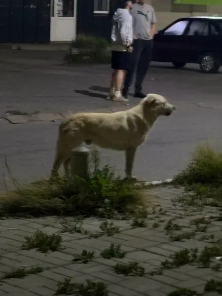 Соседи видели. Пугливый. Предложили корм, убежал, только пятки сверкали. Вдруг кто ищет