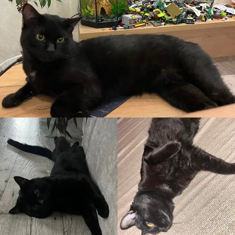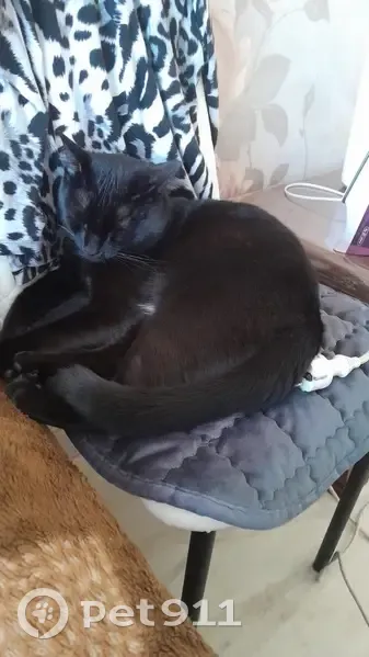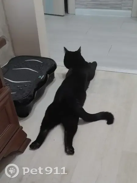 Кот черный,крупный,с небольшими белыми вклбчениями на груди. Видно,что кот домашний,чувствует в квартире себя как дома. Мы бы оставили себе,но в доме кошка,очень сильно его боится.