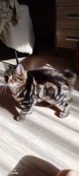 Нашли вечером 30.08.24 между МКД Стофато 2 и 10, металась между машин, котенок, девочка 7 мес., в ошейнике, общительная, контактная, адекватная, любопытная, здоровая. Ищем старых или новых хозяев. Тел.: 89960522713 Наталья.