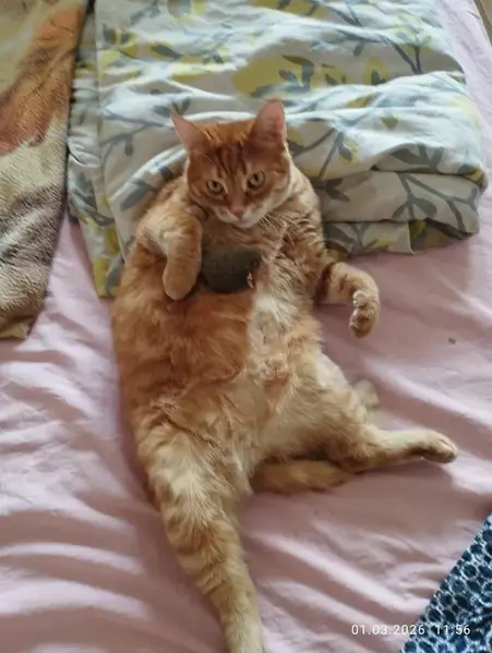 Рыжий мальчик, не кострирован, очень спокойный, даже дал себя помыть