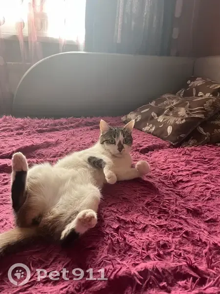 На носике коричневое пятнышко,на голове как-будто нарисован паук. Кошка не любит,когда ее берут на руки,не особо тактильная,но добрая. Выбежала из окна утром,когда все спали,дальше ее местонахождение неизвестно. Помогите найти пожалуйста Может кто приютил.Дети очень скучают по ней