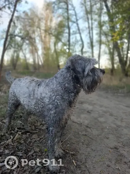 Окрас серый, стрижка как у миттельшнауцера. Гуляла вечером и испугалась овчарки, побежала в сторону "Альтаира". Собака контактная, не агрессивная, откликается на кличку. К сожалению, ошейник остался на поводке.