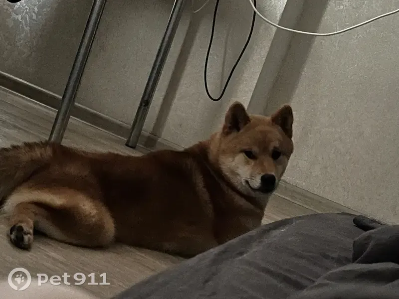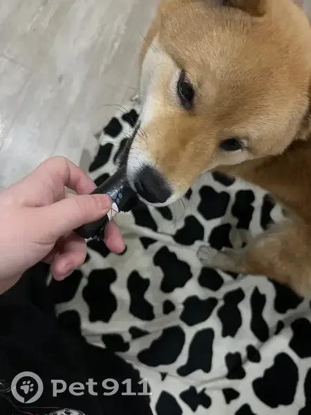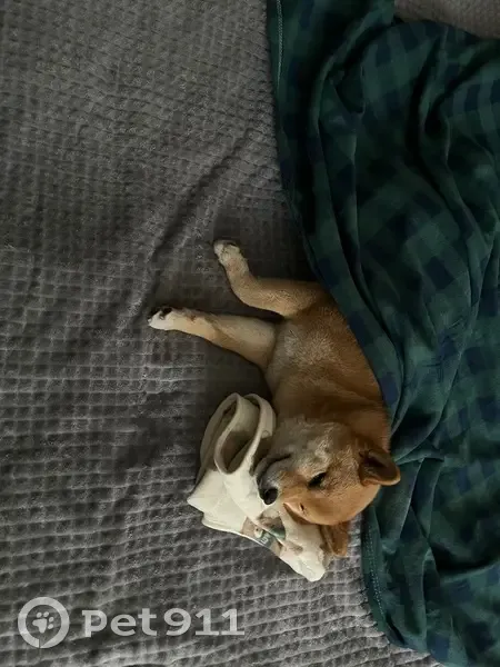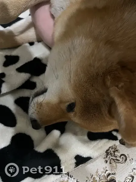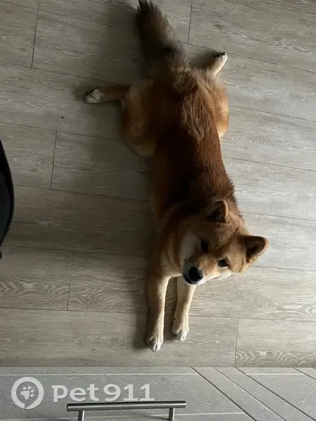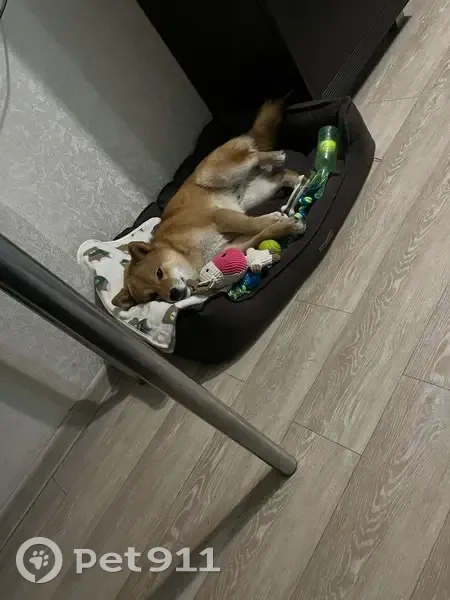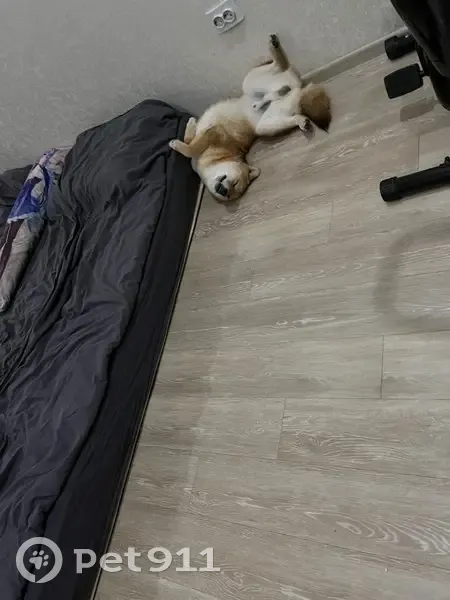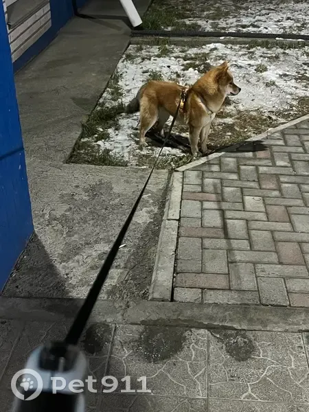 Шлейка желто-розово-голубая. Метка с nfc фиолетовая. Убежал с поводком рулеткой серо-черной. Порода сиба-ину. Откликается на малыш или Яша. Он очень пугливый, так что на контакт возможно не пойдет :(