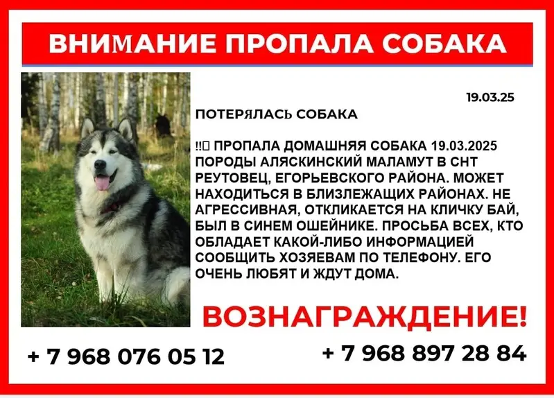 Найден Кобель хаски / лайка / маламут , жил 1,5 мес в деревне Абрамовка. По информации от жителей, выкинули из машины. Позже сбежал в соседние СНТ. Может кто-нибудь узнает своего питомца Будем благодарны каждому репосту ️ ️ ️