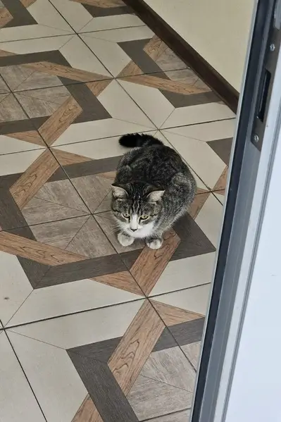 Кошечка в красном ошейнике, трехцветная, ушла гулять и не вернулась!
