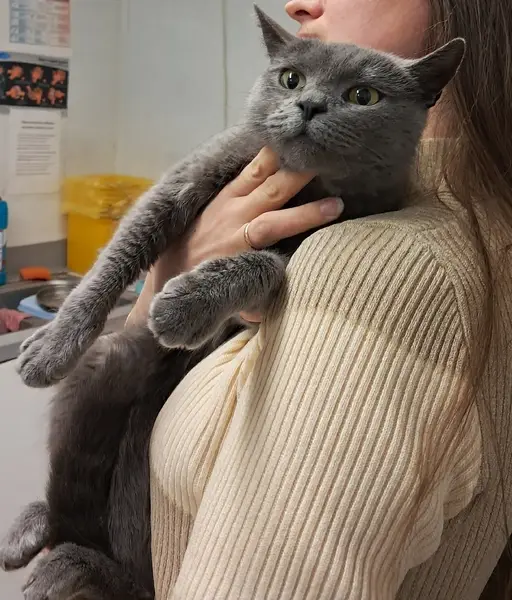 Полностью серого цвета . Пугливый , мяукает тихо. Вышел из домика на базе Хозяйство Доброе и больше его ни кто не видел . Осталась небольшая надежда, возможно он пришел на чью-то дачу .