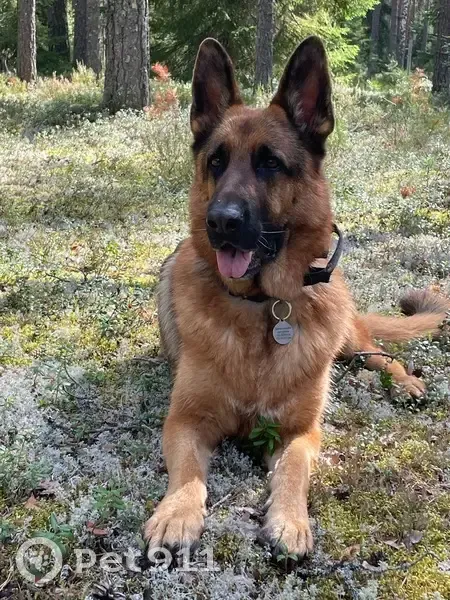 Немецкая овчарка по кличке ЗОЛТАН, окрас чепрачный. На ухе клеймо. Есть чип на холке. Убежал в лесу за лосем территориально между КП «История Парк» и КП «Елизаветинское».