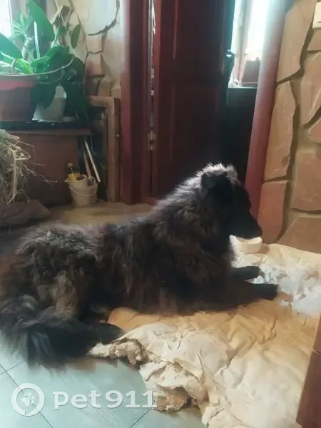 Коричневая, длинношерстная, с белым пятном на груди и на концах лап (как следочки белые), флегматик, бояка (недавно ее подобрала), очень спокойная, убежала в шлейке и в ошейнике. Я уехала на море, а человек, кто должен был с ней гулять выпустил или упустил - не знаю - специально или нечаянно.