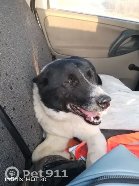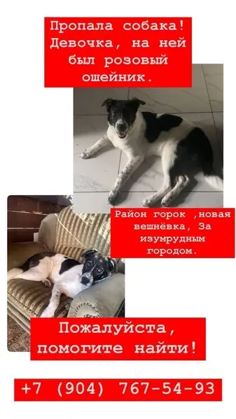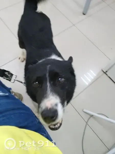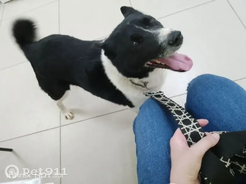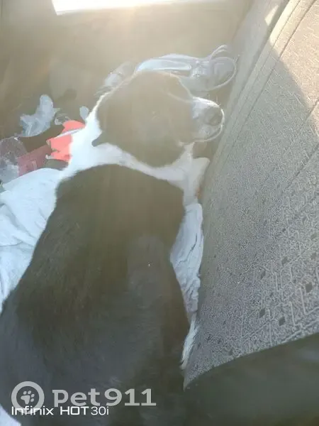 Девочка метиска черная с белым, с металлическим ошейником, в машину идет сама с удовольствием, кататься любит ведет себя тихо, на поводке гуляет хорошо