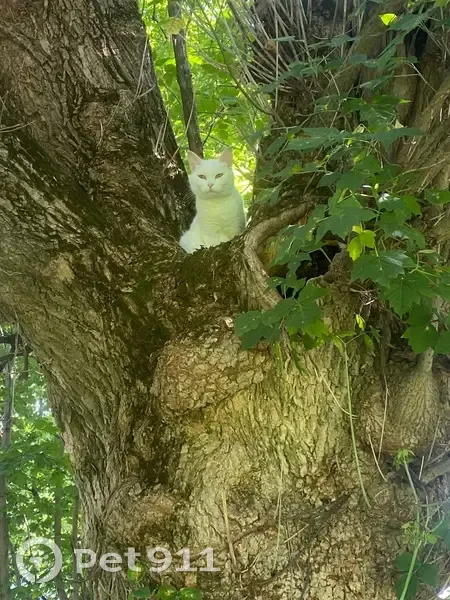 Белая кошка или кот, вроде бы кошка. Ухоженная, очень ласковая. Корм сухой и влажный кушает, очень грустная. Скорее всего потерялась, хозяин найдись он(а) скучает