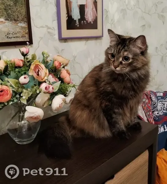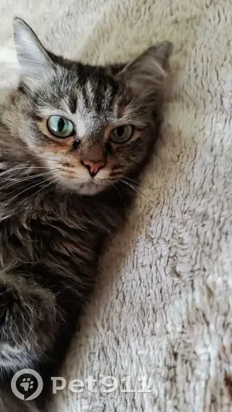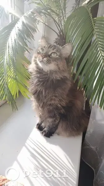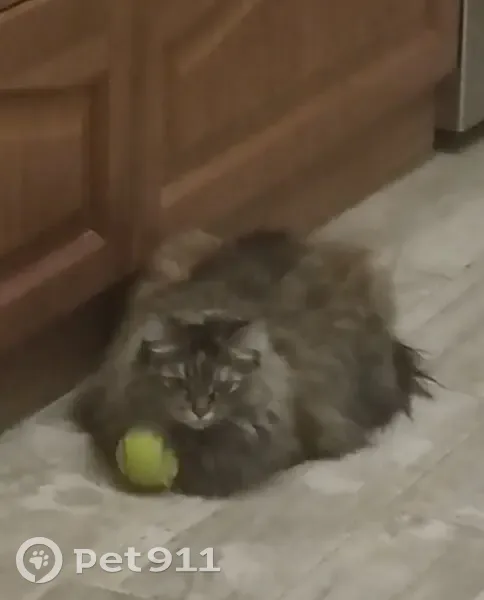 Возможно выбежала их дома, пока дверь была открыта. Она очень пугливая и не говорливая. Очень пушистая с большим количеством шерсти между пальцами лапок