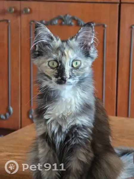 С передержки пропала кошка. Возраст 4-5 месяцев. Пропала по словам хозяйки передержки 27 июля, к сожалению, мне сообщили об этом 2 августа вечером Приметы: На носике розовое пятнышко слева, трёхцветная кошечка, окрас черепаховый. Левая сторона переносицы светлая, правая темная. Среднешерстная. На передних лапах светлые пятнышки