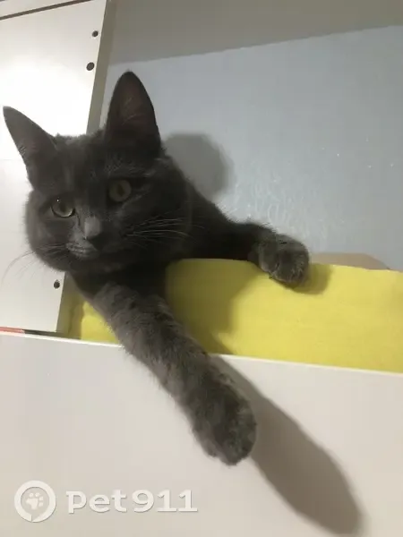 Найден кот, серый окрас с пятном белым в виде галстука . Чистый, видно домашний, оказался в подъезде , видно приученный в туалет выходил на улицу , в подъезде чисто . Хозяин найдись .
