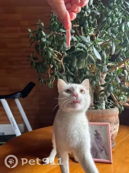 Нашли белоснежную молодую кошечку. Стерилизована, ухожена, ласкова. Хорошо уживается с другими животными и детьми, отлично знает лоток. Ищем хозяев или ласковые и ответственные руки.