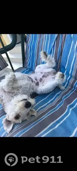 Девочка. Кличка Фокси. Жесткошёрстный фокстерьер . Окрас белый с серым пятном на спине в виде седла. Коричневые уши. Была без ошейника. Контактная. Когда потерялась 1.7 Сейчас уже 3-3.5 года. Пятна на теле. На пузе пятна серые в виде сердечек