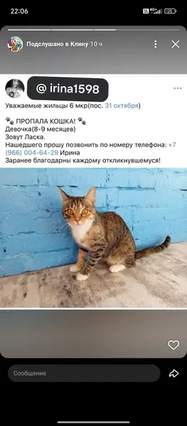 Объявление rf1034686 размещено в группе ВКонтакте Москва | Pet911.ru пропала найдена собака кошка