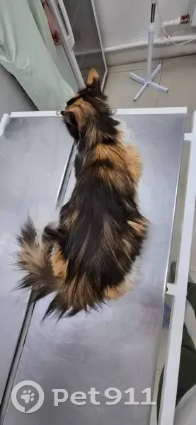 Трехцветная роскошная длинношерстная кошка была эвакуирована с дерева. 4 дня просидела напротив 4-го дома в 85-м квартале (Ангарск). Домашняя, ухоженная. Сейчас находится в приюте Бобик и Барбос.