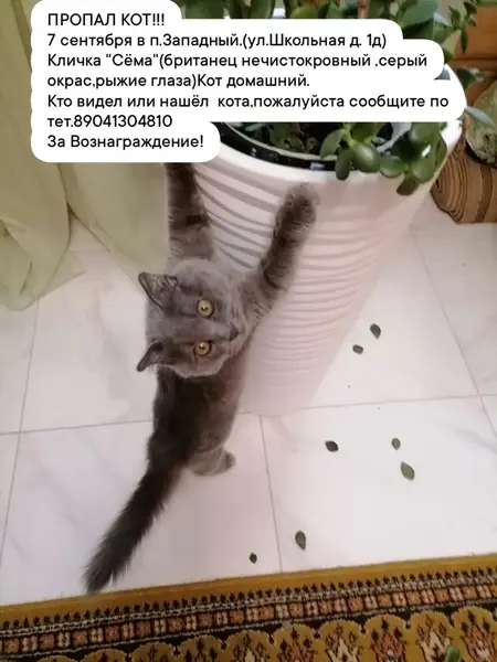 #4shvostikomкошка На Б.Рябикова найден кот британский веслоухий, возраст может чуть больше года ,видно что домашний, к лотку приучен ,ищем старых хозяев ,приглядитесь может у ваших соседей или друзей пропал именно этот кот !!Писать в лс или Катя .