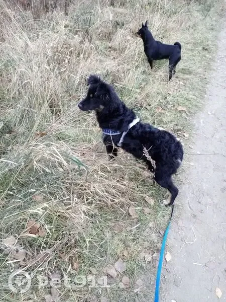 Чëрная, кудрявая спина, уши полу стоячие, щенок 5-6 месяцев, на грудка белое пятно, лапки рыжие. Бегала около 36 садика в 192 квартале.