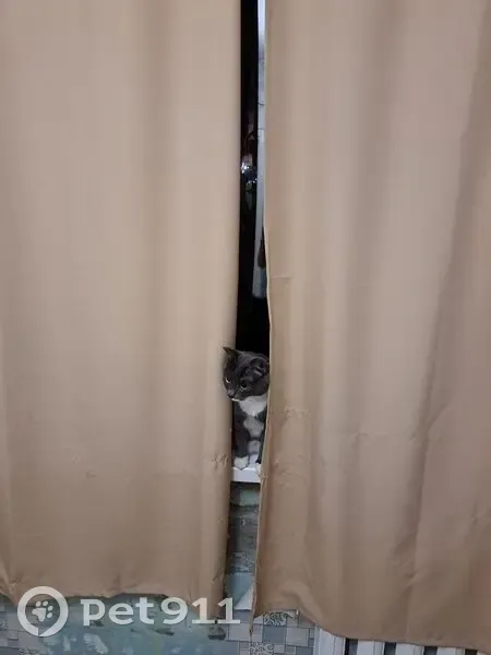 Серый, на груди белое пятно похоже на сердечко, лапки белые чулочки, на мордашке тоже есть белый кусочек, вечером в воскресенье в часов 22 или позже возможно упал с окна первого этажа так как до этого как обычно смотрел на улицу через окно утром в понедельник кота уже дома не было поиск с утра ничего не дал как и вечером после работы