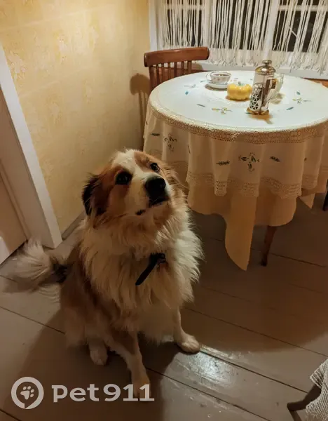 Пушистый пёс, рыжий с белым, дворняга, крупный, в ошейнике с синим жетоном, где номер телефона и кличка, привит, стерилизован. Есть Чип! Его знают в клинике "Питомец" в Щелково. Пропал в селе Анискино , ул. Межевая. 31 декабря во время салюта. Домашний, добрый, знает команду ко мне, может бояться чужих людей. Нужно назвать по имени и протянуть руку, чтобы обнюхал, погладить за ухом, если даст. Сказать "пойдем со мной" и поманить какой-то едой. Вознаграждение нашедшему!!!