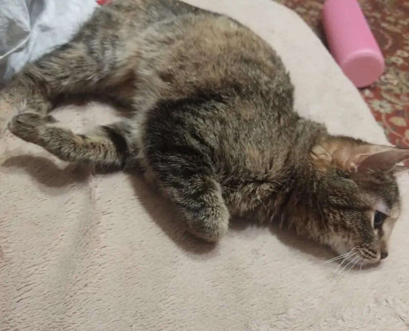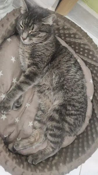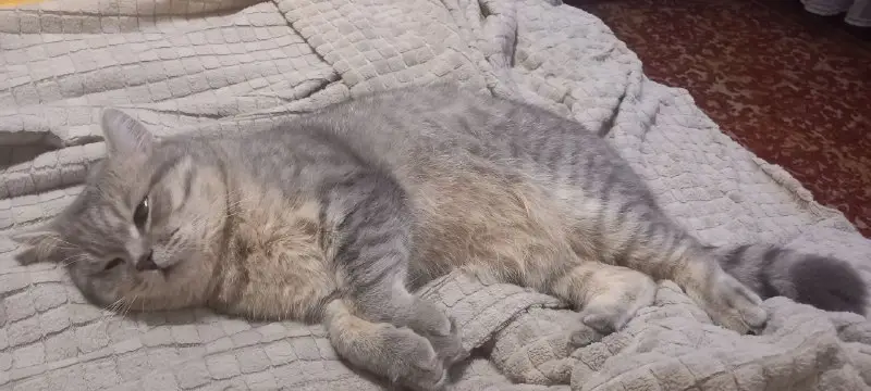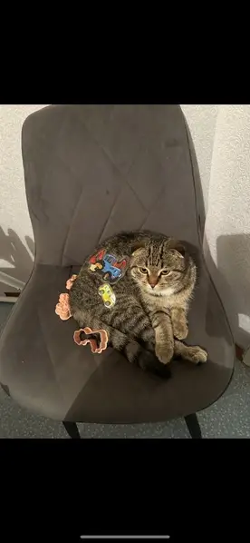 Найдена кошка в бухте Де-Ливрон. Была беременна, 19-20.07 уже бегала без живота, от людей не уходила, спала на крыльце базы. Глаза песочного цвета, нос коричневый, трехцветная, кожа пяток темная, голос скрипучий. По словам ветеринара, возраст 3-5 лет, слева на верхней челюсти отколот зуб.