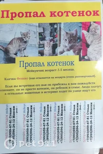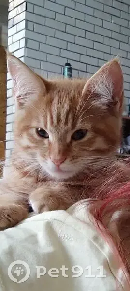 Окрас рыжий. Хвостик имеет лёгкий сероватый оттенок. Мейкун. На ушках кисточки. Котенку 3.5 месяца. Котенок очень любит говорить. Пропал котенок в ночь с 23-24 декабря