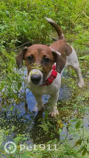 Окрас белый с рыжим.Выбежал со двора в 18:20.По камерам видно,что когда Найк выбежал со двора,чего то испугался и побежал в сторону дороги.Щенок боится чужих людей и больших собак,но как правило не прячется.Поэтому,скорее всего он будет метаться в страхе и панике.Выбежал без ошейника.