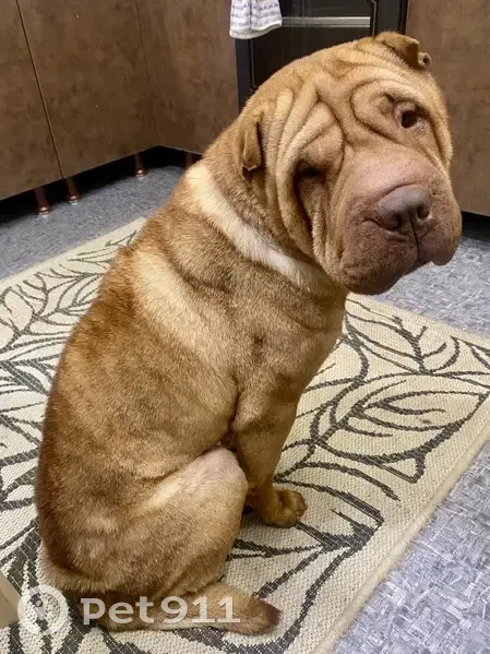 Рыжий , без ошейника; на левой задней ноге новообразование - шишка. Неплотно закрыта была калитка, из-за снега(((. К людям не проявлял агрессии, но плохо социализированный, у прежних хозяев был цепным