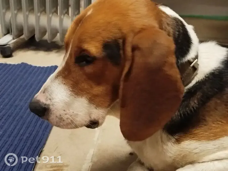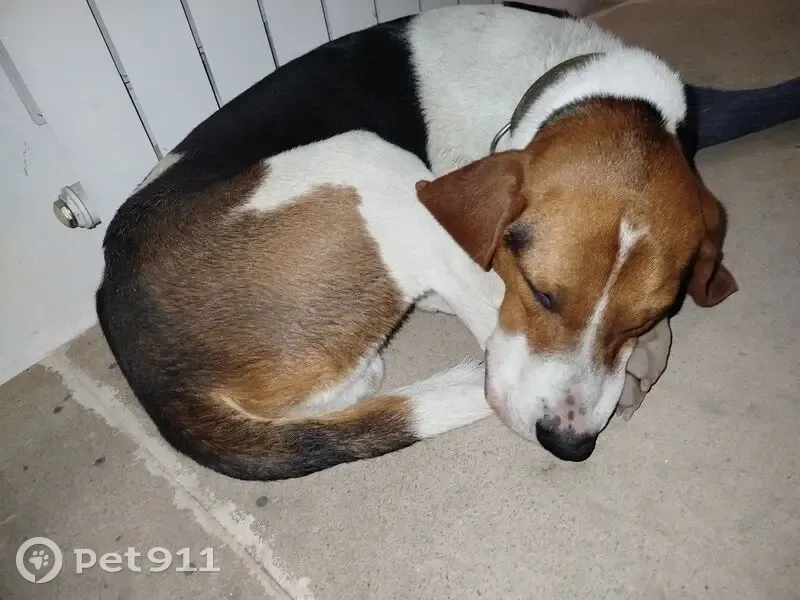 Срочно!!! Ищем хозяев! 01.12. Днём найден пёс в городе Арамиль. Среднего размера, триколор: коричневая голова, белая грудь и лапы, чёрно-коричневая спина. На собаке есть ошейник. Очень спокойный, ласковый и боязливый малыш, выглядит уставшим.