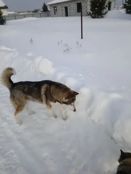 Пропала собака в Арамиле - сибирская хаски Арти, возраст 8 месяцев, серо-белый с чёрными пятнами, на шее чёрный ошейник, пропал в районе Бородулино-Эксперимент-Патруши, вознаграждение.