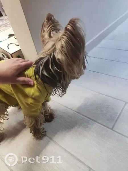 Нашли собаку на кольце в Аргаяше! Недалеко от автозаправки Лукойл! Бегала между машинами, испугались что задавят, взяли пока к себе! Йоркширский терьер, мальчик, похоже что не очень молодой, очень умный! В жёлтой кофточке!
