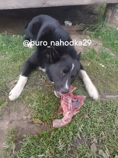 Пес гулял днем 14 января один в сквере на Воронина. Ошейник коричневый, карабин массивный, без поводка. Возможно сидела на привязи (или сорвался или хозяева отпустили гулять самого). Похож на стандартного бордера или нестандартного аусси, возможно помесь с австралийской овчаркой. Пес черный, мохнатый. Морда черно-белая, воротник белый, манишка белая, на передних лапах окрас как белые чулки с темными пятнышками, задние лапы как в белых носочках. Пес не агрессивный, игривый.