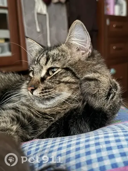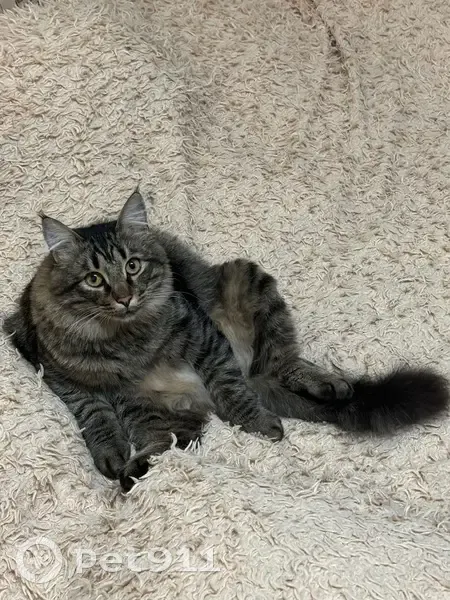Пушистый, крупненький, выбежал из сумки и побежал в сторону здания «Северная Корона», спрятался под машину, в попытке разглядеть где именно он, пропал из виду. Возможно просто очень хорошо куда-то спрятался и не отзывался, возможно убежал куда-то. На кличку отзывается не всегда, очень пугливый, так как был относительно недавно подобран с улицы