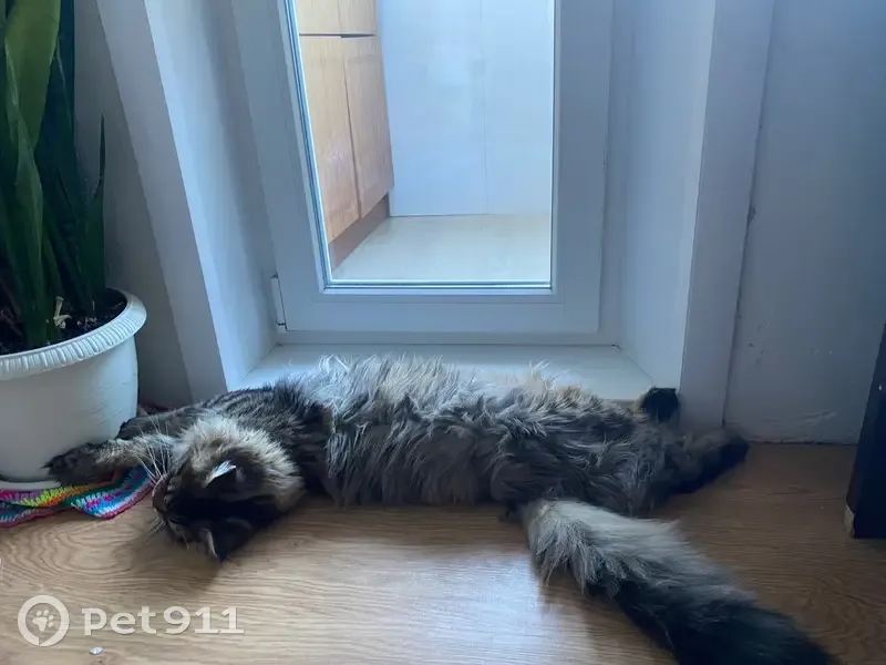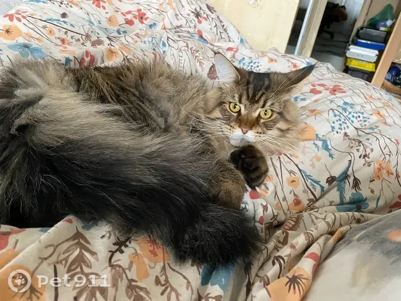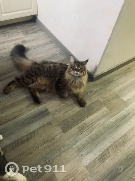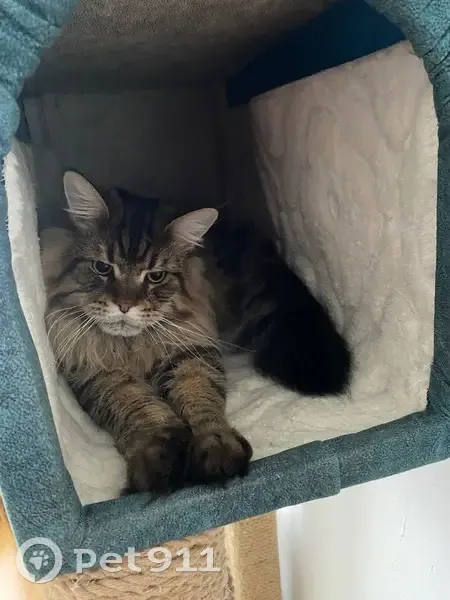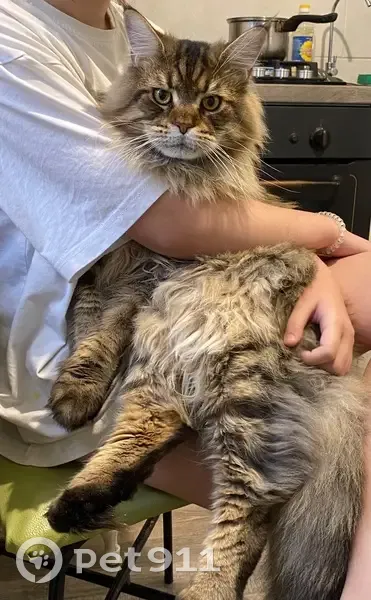 Кот Юджин,Серо-коричневый окрас, Майн-кун, крупный,возраст 1 год 6 месяцев.Ночью, 3 августа, примерно с 1 ночи до 4 утра, выпрыгнул из окна 3 этажа, по адресу г.Архангельск, ул.Воронина, д.45, подъезд 3.