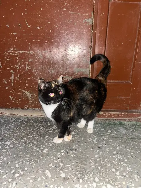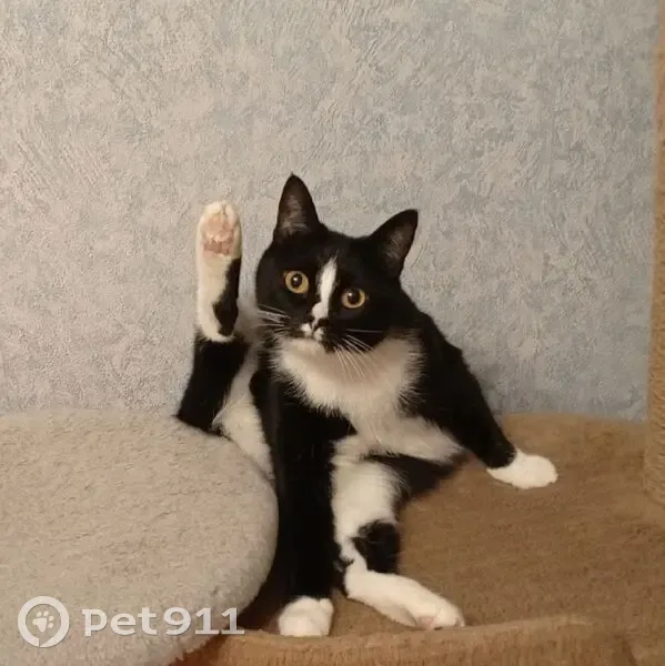 Описание: Кошка без породы по кличке Броша. Черно-белого окраса(как во фраке). Белая полоска на носу(похоже на меч). БЕЗ ОШЕЙНИКА. Глазки желтого цвета.