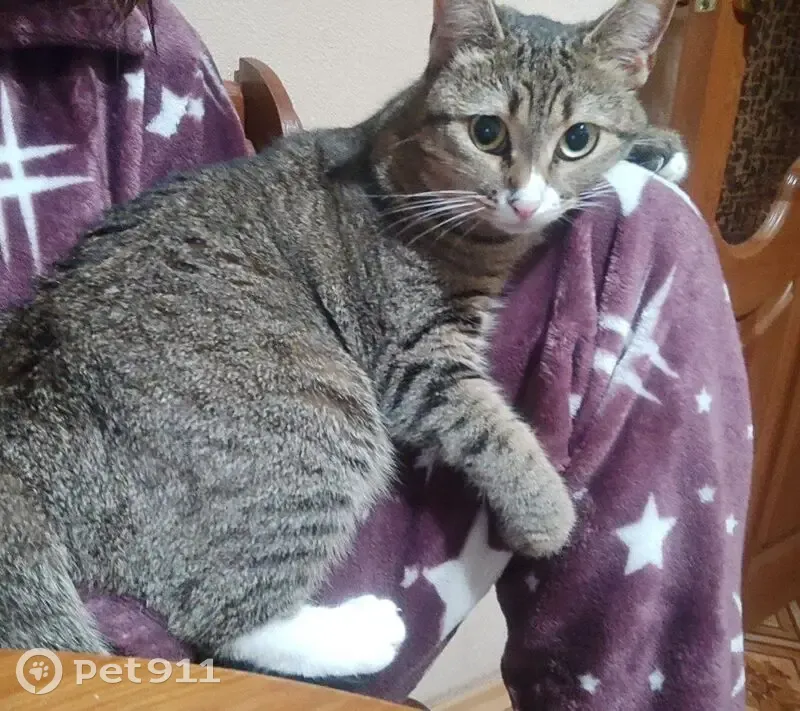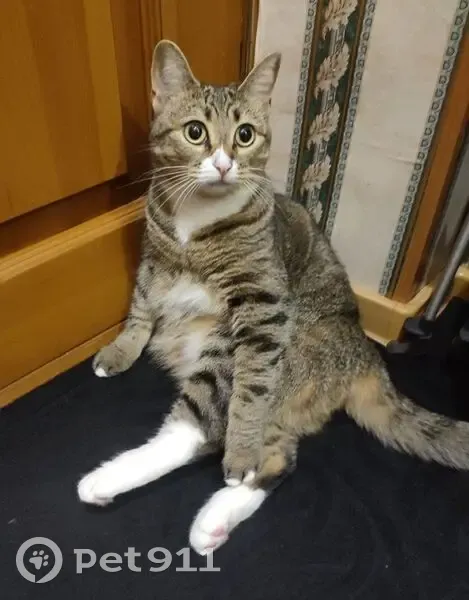 Пропала во дворе дома 12 по ул. Суворова. Серая, с рыжими и белыми вставками. Белые лапки, белое пятно на мордочке