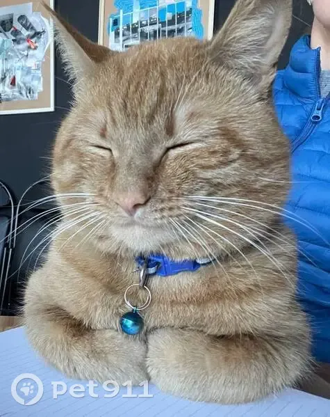 Жил в Творческом пространстве Тишина, крыльцо выходит на сторону Реки. Вечером выскочил в открытую дверь. Кот раньше жил на улице, правила жизни знает, но при этом очень ласковый, контактный, любит сидеть на коленках, любит внимание и ласку. Рыжий. Крупный. Некастрированный. На шее синий ошейник.