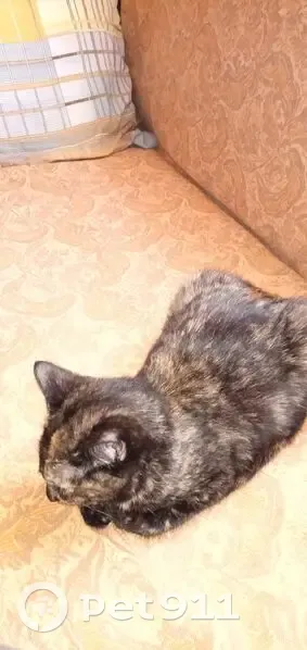 Окрас черепаховый. Ошейник синего цвета. 10 месяцев ей. Привезли на прививку в ветклинику в районе Волохницы. Вырвалась из рук и убежала. Помогите, пожалуйста, найти нашу кошечку.