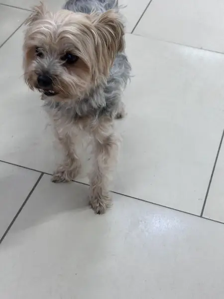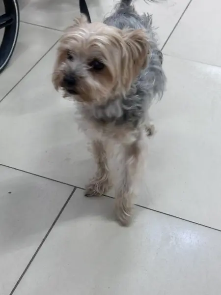 Йоркширский терьер, девочка. Возраст 13 лет (старенькая). Классический окрас для Йорка, туловище - пепельное, голова - рыжеватая. По размеру очень маленькая. Вес 3 кг.