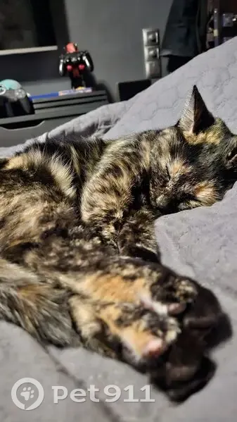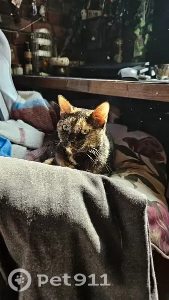 Миниатюрная, черепаховая кошка. 3 года. Худенькая. Отзывается на имя Мисти. Пугливая, но ласковая. Глаза жёлто-зелёные. В 10 вечера выбежала в неосвещённый подъезд через входную дверь.