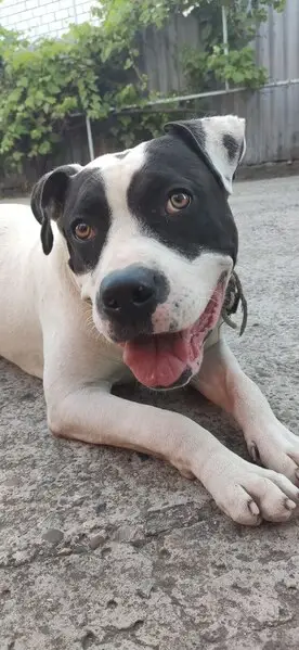 Собака очень спокойная и доверчивая. Пришла сама ко двору, спокойно зашла во двор. Видно, что девочка взрослая. На правом боку испачкана зеленой краской
