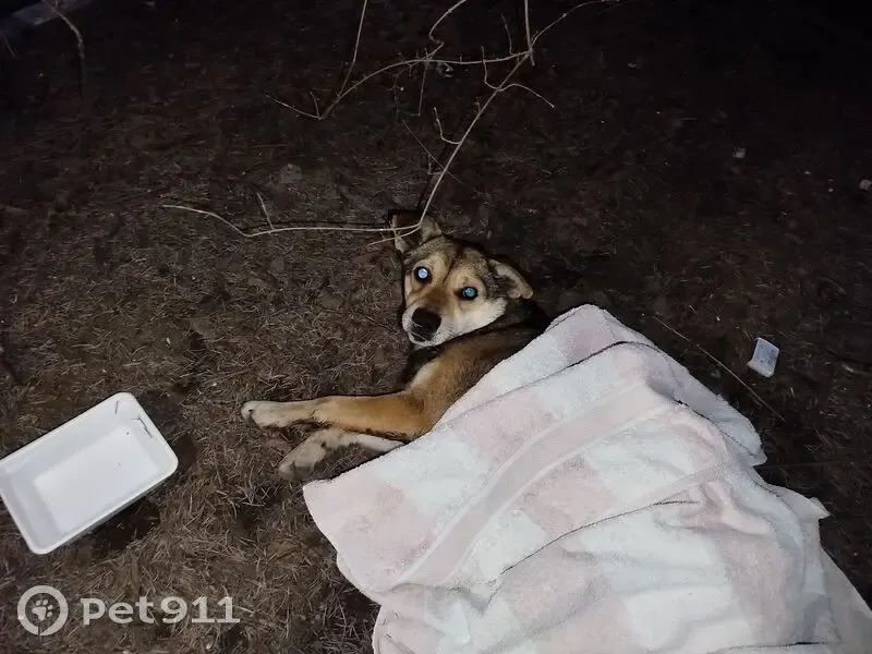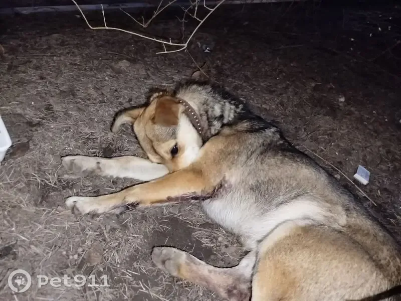 Рычит и скалится, встать не может, кажется сбила машина, лежит на обочине под кустами, укрыт полотенцем