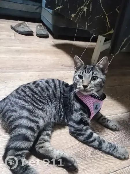 Темно серая в полоску. Зовут Соня, очень сообразительная кошечка, вышла на улицу и пропала. Могли своровать, и завезти недоброжелатели.Просим вернуть за хорошее вознаграждение