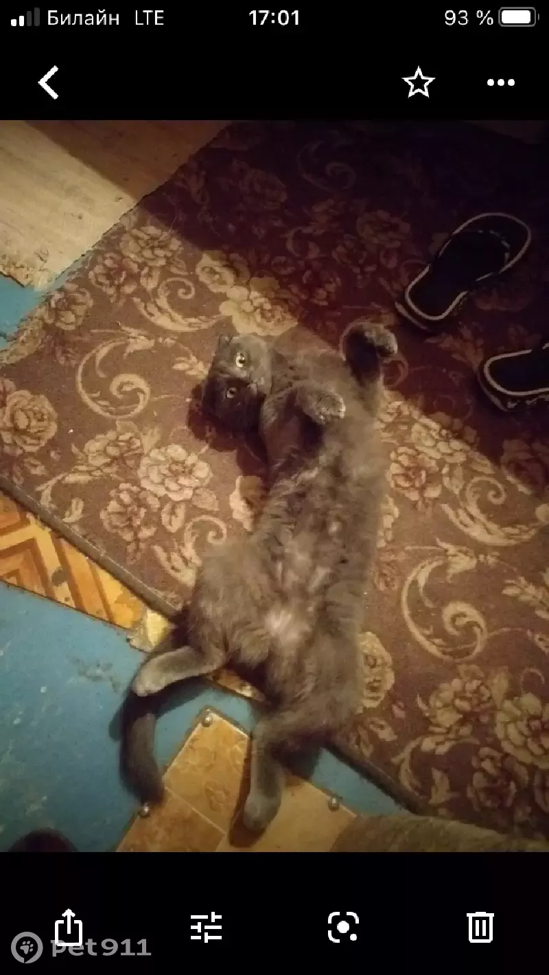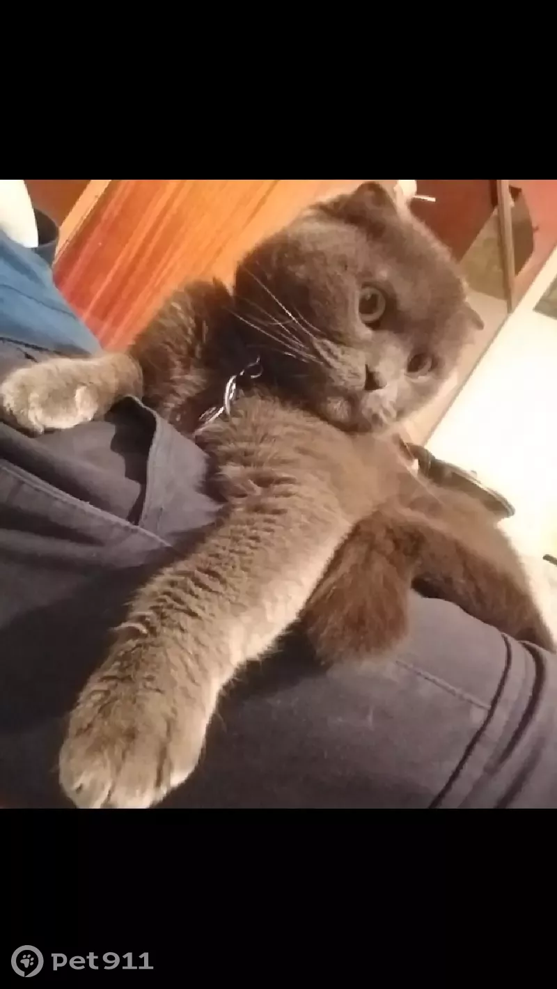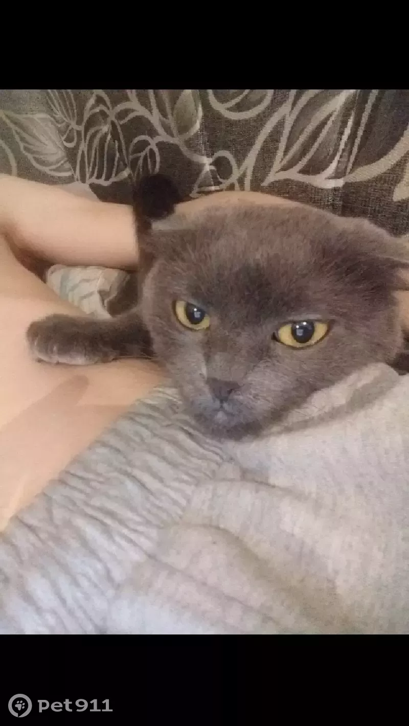 Порода Шотландка вислоухая,девочка. Окрас дыма темного. Особые приметы,золотистая цепочка с круглым кулоном сердечка,ошейник. Отзывается на кличку «Тана» но может чужим не даться в руки!!! Кошка выпрыгнула с 4 этажа с Болкона,ночью! Там временный адрес на котором она находиться,у друга,так как я не в городе,на Который адрес она может пойти Поветкина 25 общежития,5 этаж. Но это не точно,так как кошка была чисто домашняя!!!
