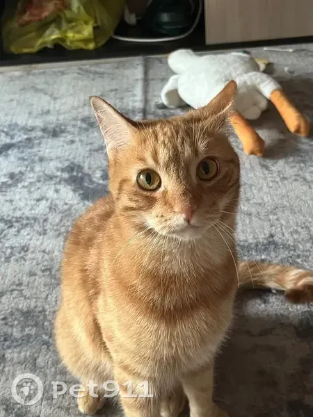 Пропал рыжий котик по имени Лепа, окрас полосатый рыжий , все лапки рыжие (без белого) , не крупного телосложения , не породистый. Убежал с первого этажа вечером 15 мая 2025 года Район Абсолют Ломоносова 82 Мальчик