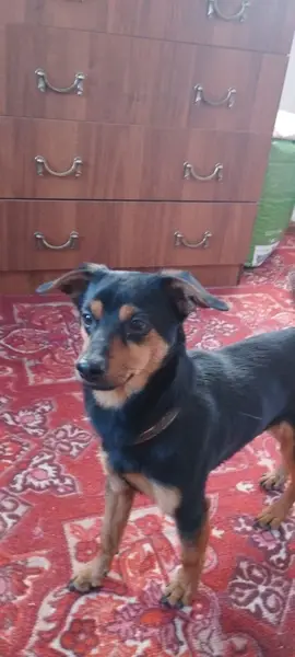 Гриша (пинчер) , кобель , черно-рыжий, ушки не стоят . Ехали с Вольво-надеждинска останавливались за Ивановкой (где прорубленная сопка) мог там выскочить из машины ; или же в Арсеньеве на рынке , более остановок не было . Обнаружено было что собака потеряна , поскольку не бегал по машине (машина большая и он часто по ней перемещался )