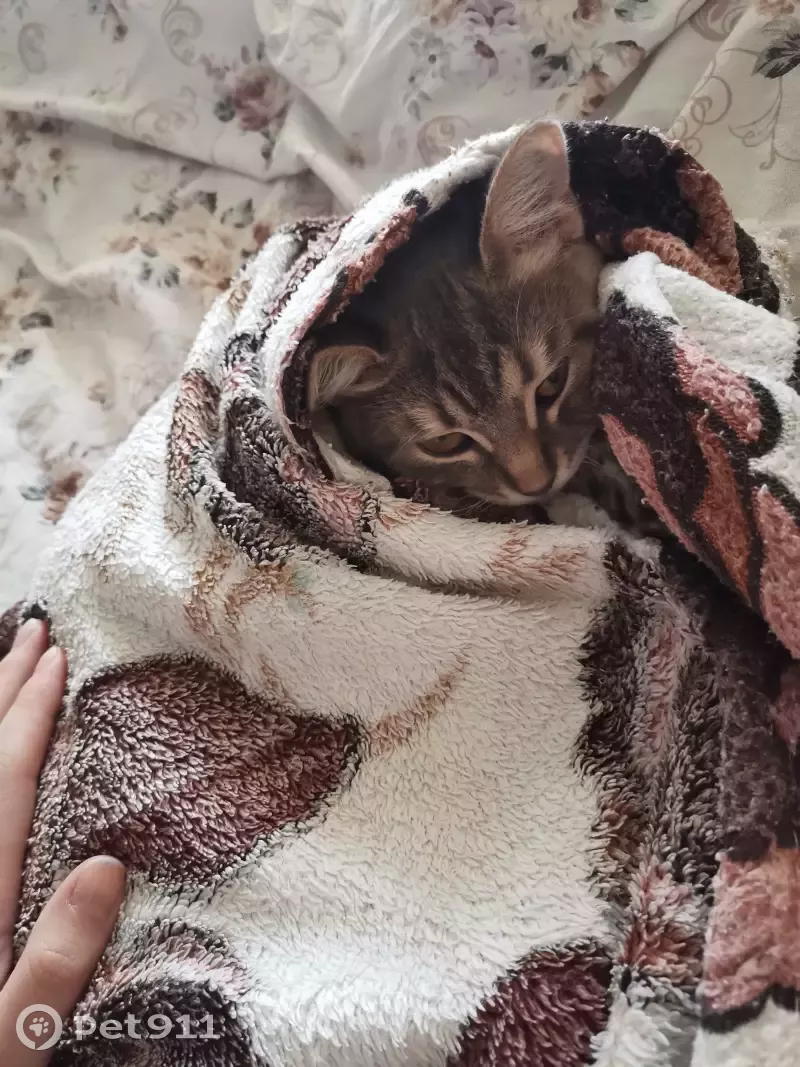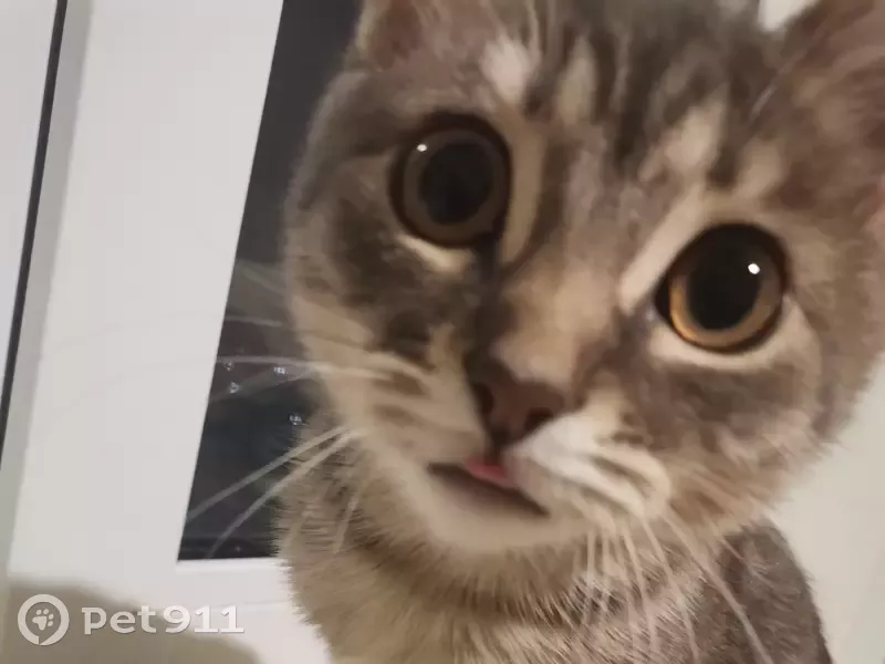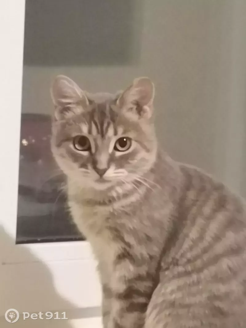 Кошка девочка, дворняжка, серого цвета в белую полоску, не крупная, среднего размера, выбежала из дома, забыли закрыть дверь. Клички нет, так как не отзывается на неё.