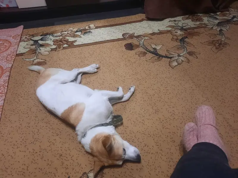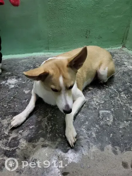 Очень ласковая, ушастая) Ноги тонкие, а туловище как-будто откормленное (вроде беременна) Окрас бежевый с белым. На улице сама подбежала к нам, не боялась, искала помощи.