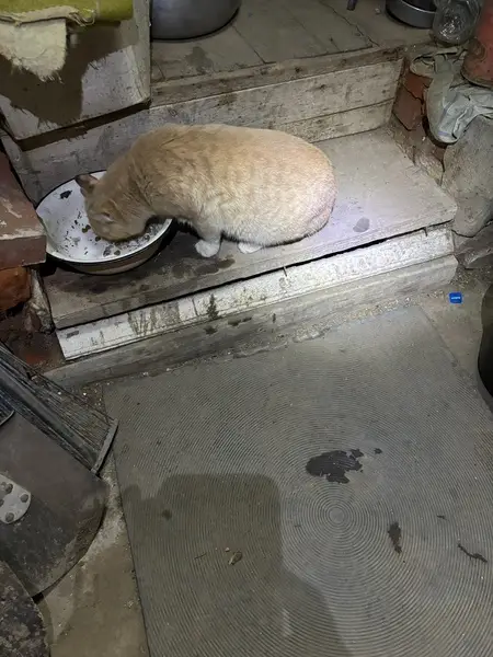 Ухоженная, породистая кошка, сидит в подъезде, от людей не убегает, но побаивается. По словам соседа, появилась в подъезде ещё 17.12.2025, но я нашёл только сегодня